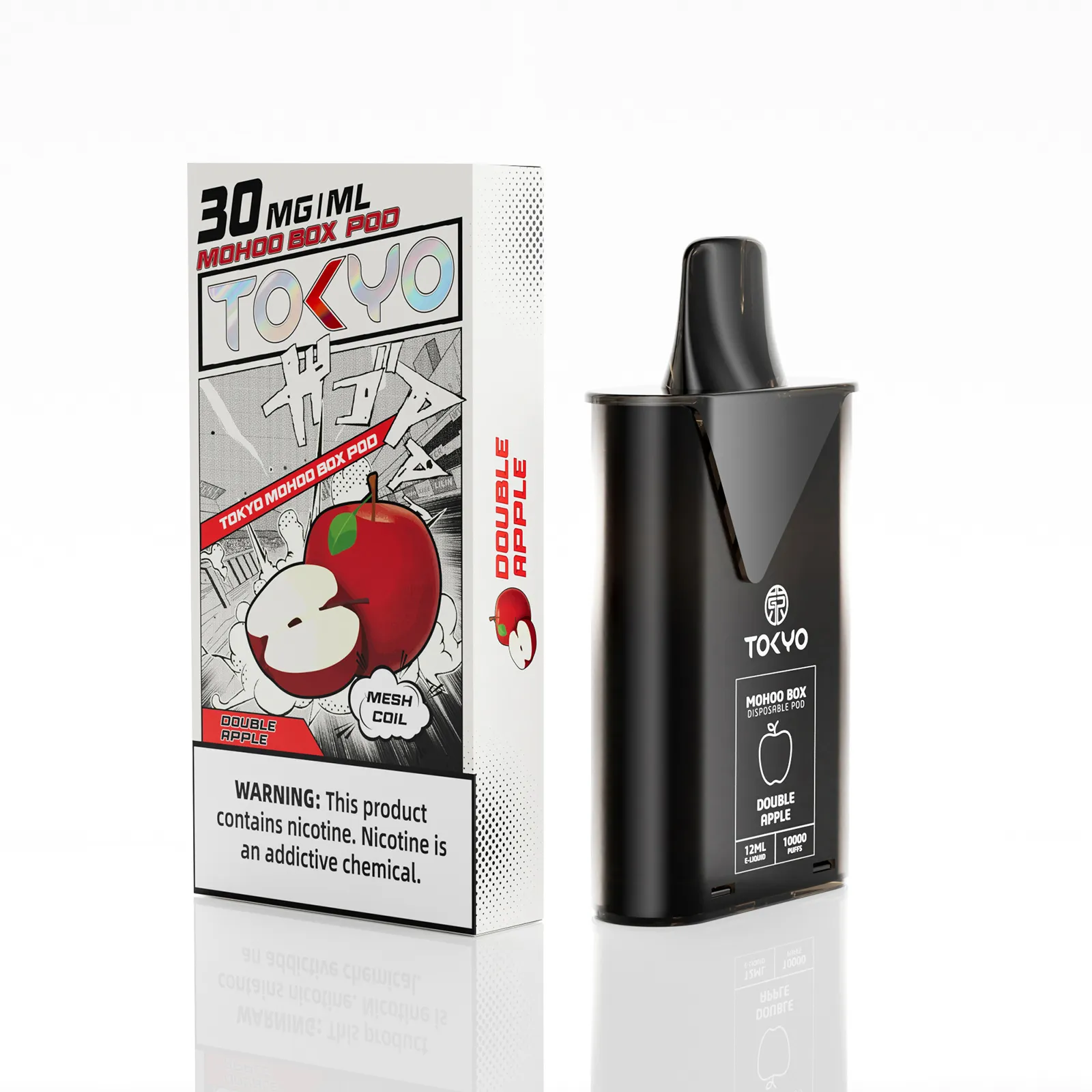 東京魔盒電子煙煙彈採用植物甘油與丙二醇基底,搭配高純度尼古丁鹽,容量 12mL、尼古丁強度 30mg/mL(3%),內建 1.0Ω 鋼網棉霧化芯,設計為一次性 pod,約可在 10,000 口,吸力持久穩定。