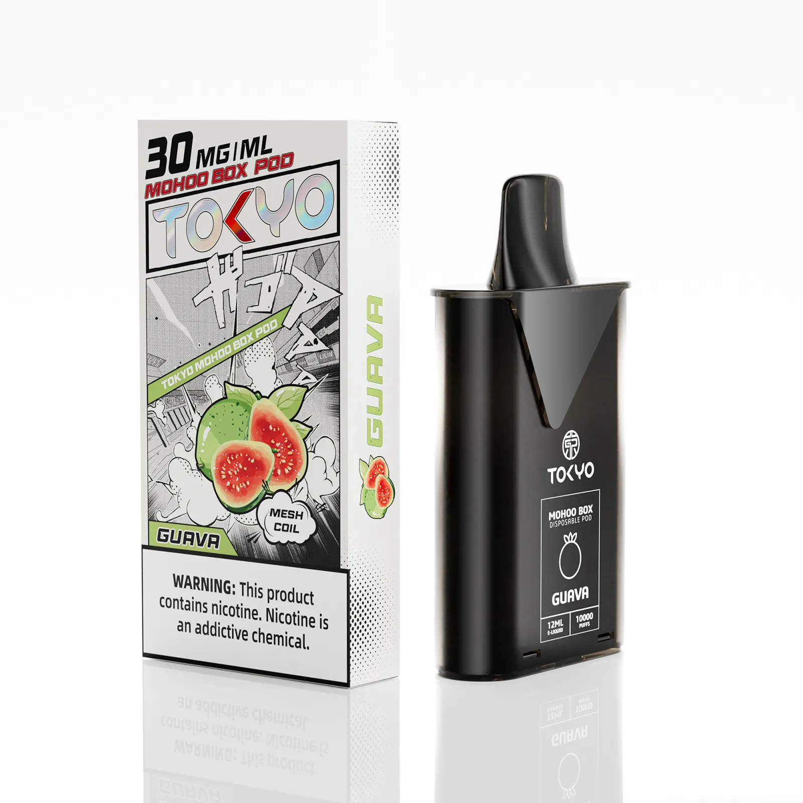 東京魔盒電子煙煙彈採用植物甘油與丙二醇基底,搭配高純度尼古丁鹽,容量 12mL、尼古丁強度 30mg/mL(3%),搭載 1.0Ω 鋼網棉霧化芯,設計為一次性 pod,約 10,000 口,吸引力持久。