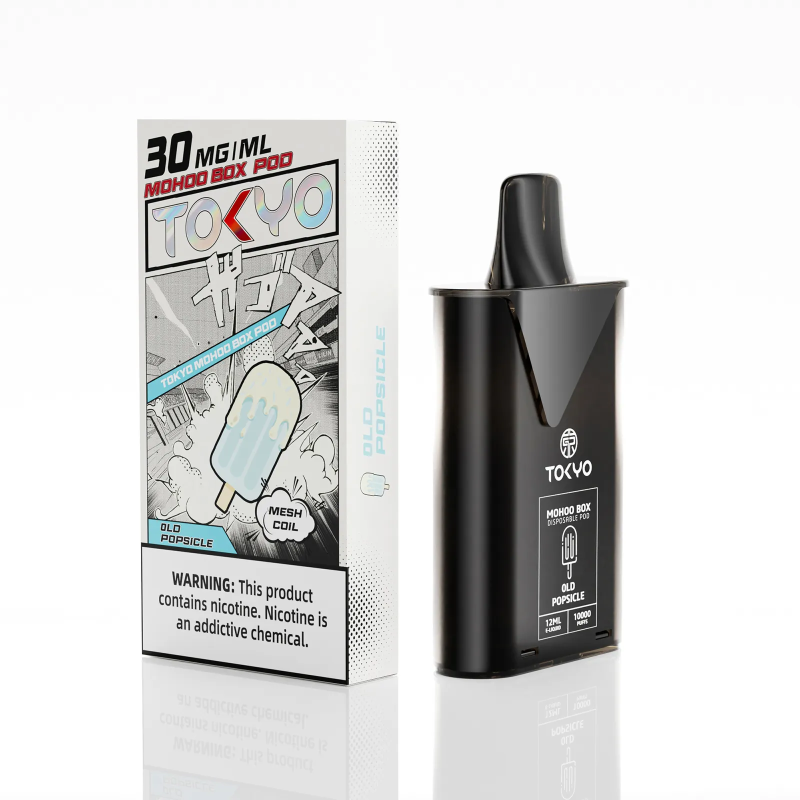 東京魔盒電子煙煙彈採用植物甘油與丙二醇基底,搭配高純度尼古丁鹽,容量12mL、尼古丁強度30mg/mL(3%),內建1.0Ω鋼網棉霧化芯,設計為一次性pod,約10,000口,吸引力持久。
